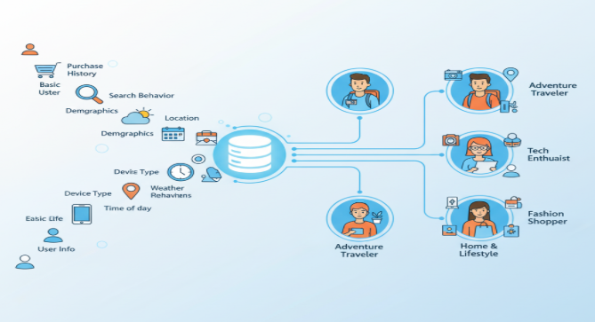 Real-time Contextual Data: Device type, current location, time of day, and even weather conditions.